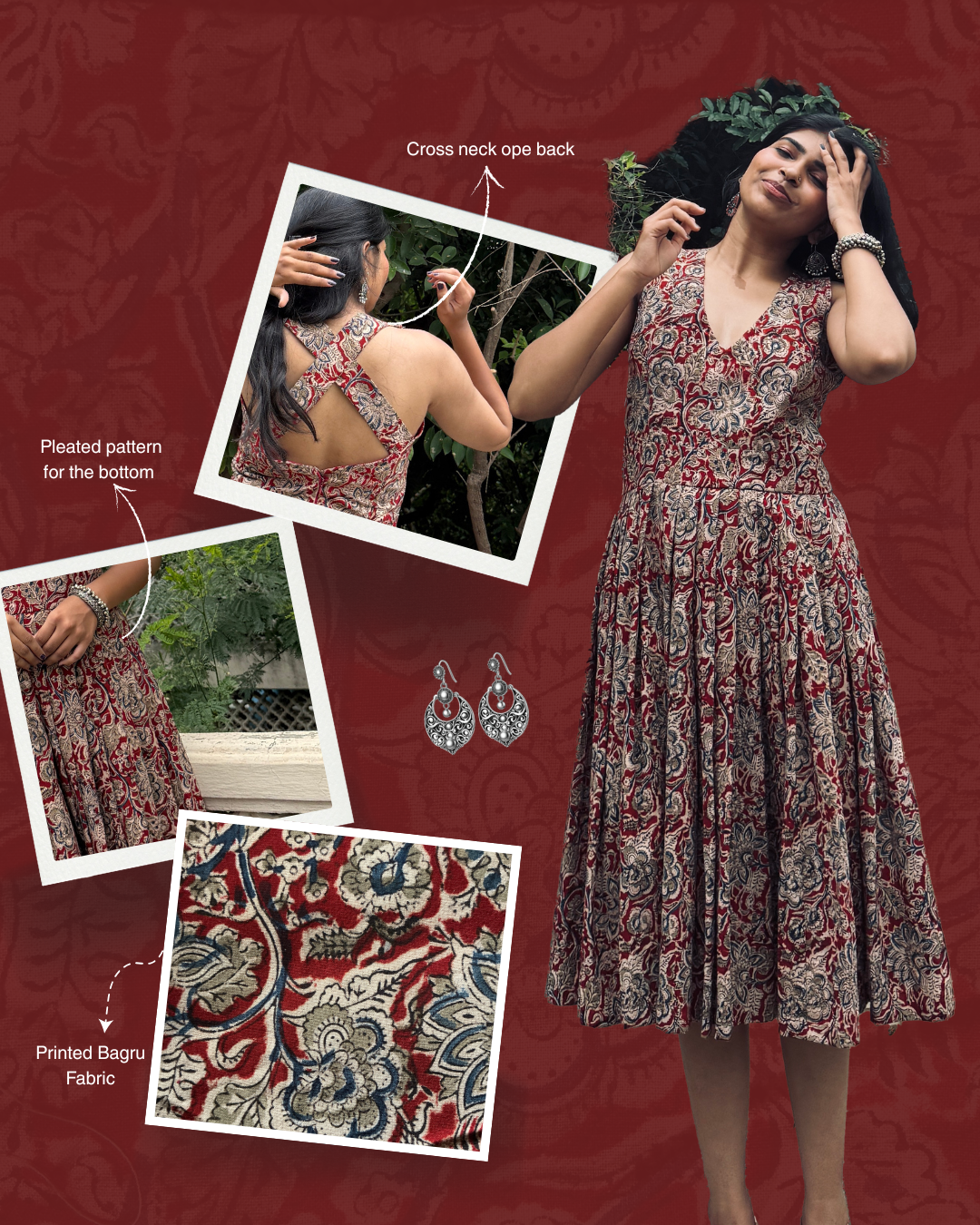 Meet Roohi An affair of Bagru and dusky red giving just the right amount of sophistication and sexy! Fit & opening – back zipper